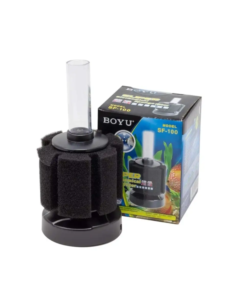 Boyu SF-100 — универсальный, прямоточный, донный аэролифт-фильтр для аквариума. Подходит для всех видов пресноводных и