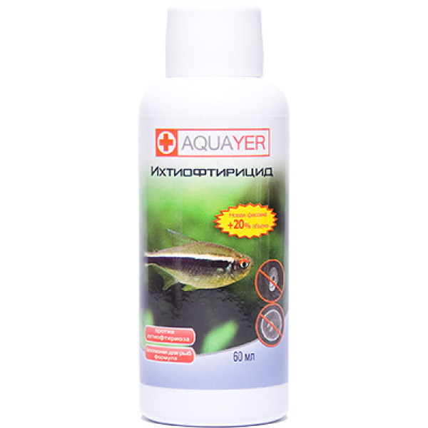 Aquayer Ихтиофтирицид — это лекарственный препарат для лечения ихтиофтириоза («манки») у аквариумных рыб. Действующее вещество
