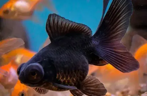 Молодая особь декоративной породы золотой рыбки. Главная особенность — большие, выпуклые глаза по бокам головы,