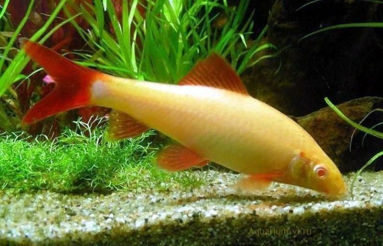 Эта рыбка — альбиносный вариант зеленого лабео. Она тоньше и вытянутее обычных зеленых лабео Тело