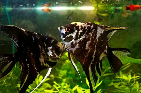 Скалярия мраморная – это одна из самых популярных и красивых селекционных форм обычной скалярии (Pterophyllum