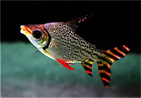 Семапрохилодус – это крупная, подвижная и очень эффектная рыба из семейства Харациновые, известная как «серебряный прохилодус» или «флаговая прохилодус». Молодь имеет серебристое тело с вертикальными чёрными полосками и оранжево-красными плавниками. С возрастом окраска меняется: тело остаётся серебристым, а на хвостовом плавнике появляются выразительные чёрные горизонтальные полосы, за что вид и получил название «флаговая». Анальный и брюшные плавники сохраняют оранжевый или красноватый оттенок. Рот нижний, приспособлен для соскребания обрастаний