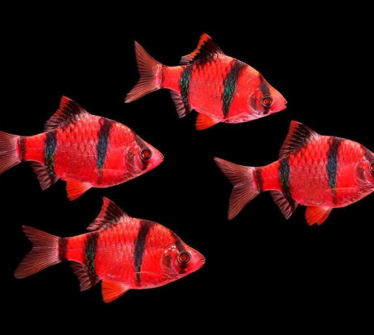 «Барбус Гонконг GLO Fish красный» — флуоресцентная форма суматранского барбуса. Получен путём искусственного внедрения в