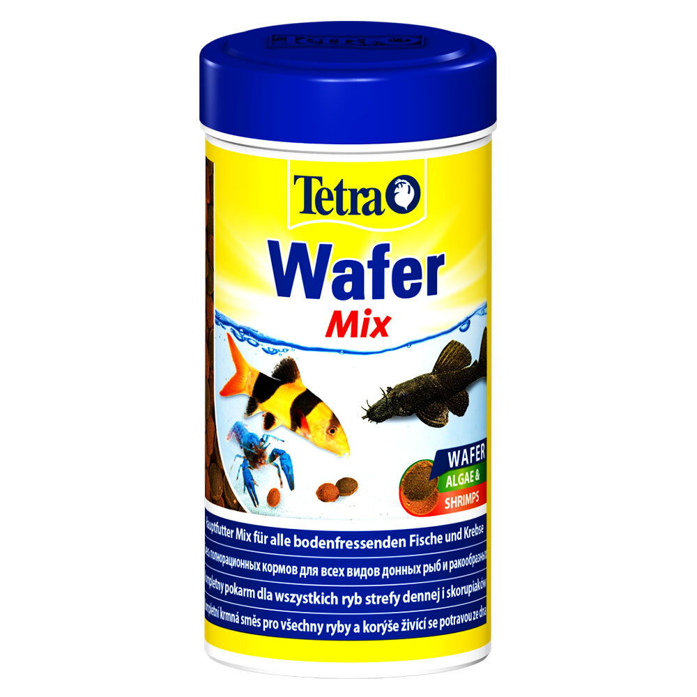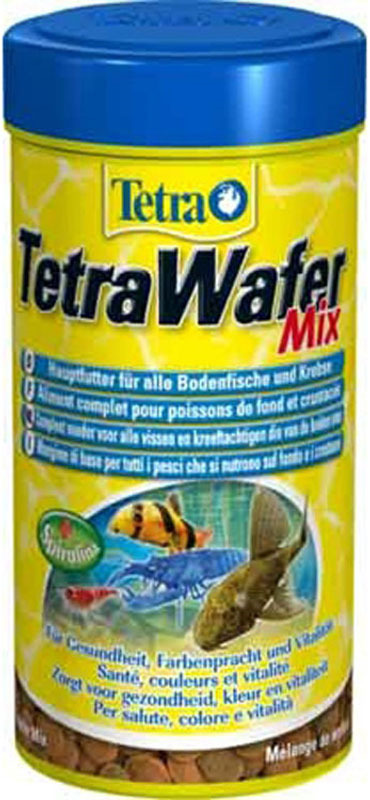 TETRA TetraWafer Mix — это специализированный корм в форме тонущих пластин (вейферов), разработанный для донных видов рыб. Корм представляет собой смесь из различных формул: с высоким содержанием спирулины (зеленые пластины), с усиленной белковой составляющей (коричневые пластины) и с комплексом растительных компонентов. Пластины медленно растворяются, обеспечивая продолжительное питание без загрязнения воды. Формула обогащена витаминами и пребиотиками для поддержания здоровья пищеварительной системы