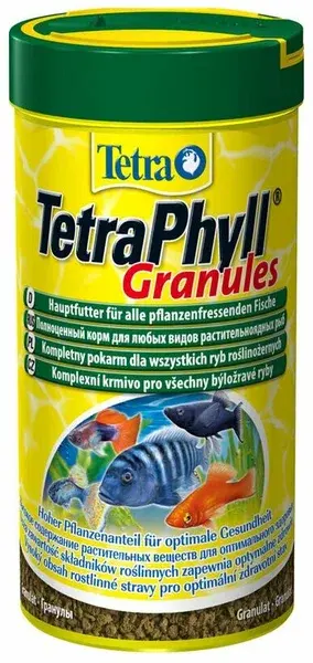 Tetra Phyll — это специализированный корм с повышенным содержанием растительных компонентов, созданный для рыб, нуждающихся